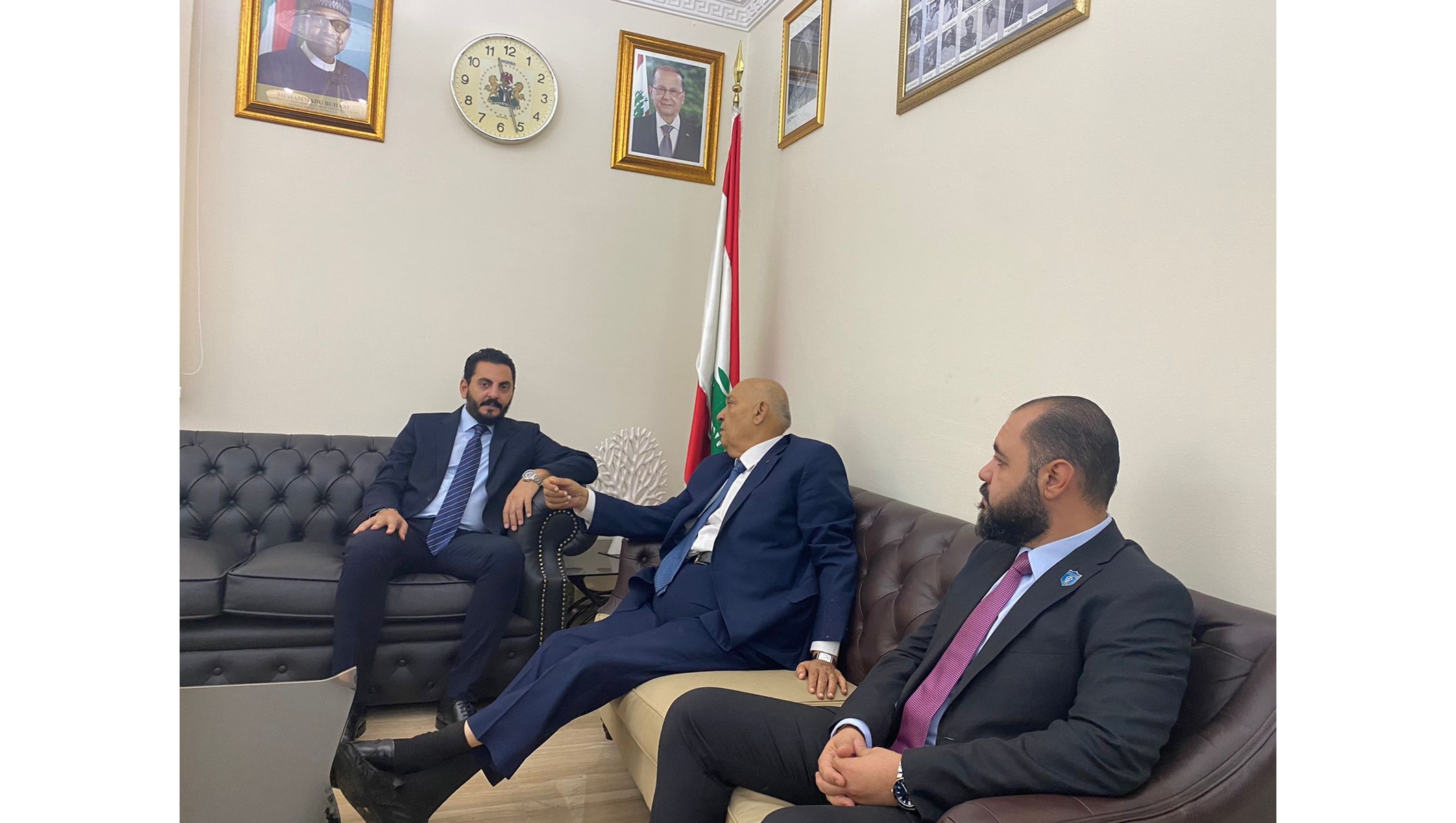 زار صباح اليوم مؤسس ورئيس اللوبي الإقتصادي الدولي د. علي المصري سفارة نيجيريا في لبنان حيث التقى بسعادة السفير غوني مودو زانا بورا بحضور الملحق الإقتصادي حيث تباحثو في سبل التعاون المشترك بين البلدين في عدة مجالات مختلفه .