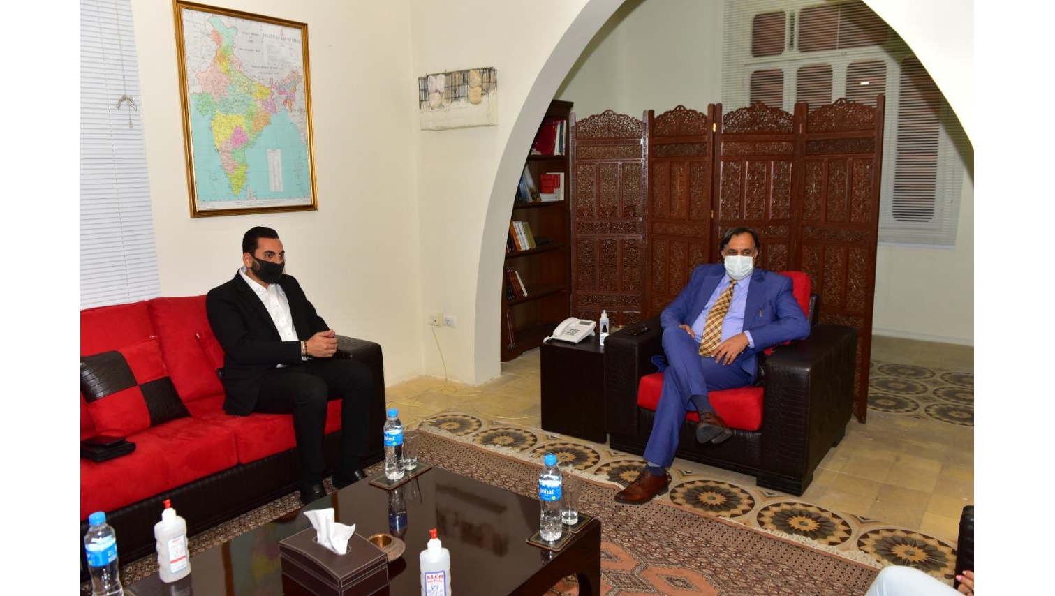 زار صباح اليوم مؤسس ورئيس اللوبي الإقتصادي الدولي واللوبي الإقتصادي العربي العالمي د. علي المصري سفارة الهند في بيروت حيث التقى بسعادة السفير الدكتور سهيل اجاز خان بحضور الانسة رنا زيتوني مسؤولة القسم التجاري وتخلل اللقاء البحث في سبل تعزيز العلاقات الثنائية وفي امكانية تفعيل الحركة التجارية والاقتصادية بين لبنان والهند ورحب سعادته بهذه الزياره شاكراً اللوبي على كل ما قدمه سابقاً من اطلاق التبادل التجاري اللبناني الهندي منذ عام ٢٠١٦ وواعداً بمد يد العون لإستكمال النشاطات واضعاً كافة التسهيلات للعمل على تعزيز العلاقات الاقتصادية بين البلدين من جهته شكر المصري سعادة السفير على هذا اللقاء المثمر واعداً بوضع كافة خبرات وعلاقات اللوبي في تصرف السفارة .