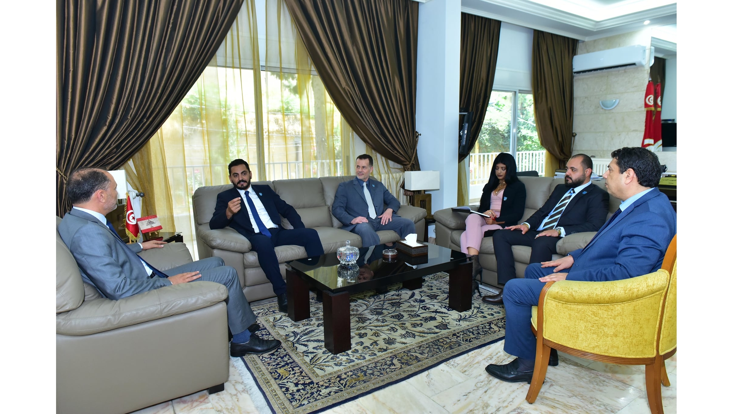 حضر اللقاء منسق عام اللوبي السيد جورج كرياكوس ٬ رجل الأعمال محمود عياش ٬ منسقة العلاقات العامة ليال بو رجيلي .